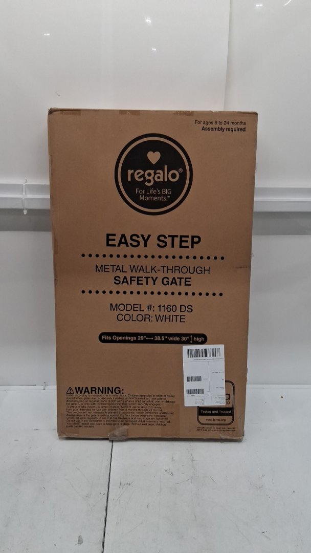 REGALO EASY-STEP METAL WALK-THROUGH SAFETY GATE - 30" x 29'' to 38.5'' - WHITE - (MODEL: 1160DS)