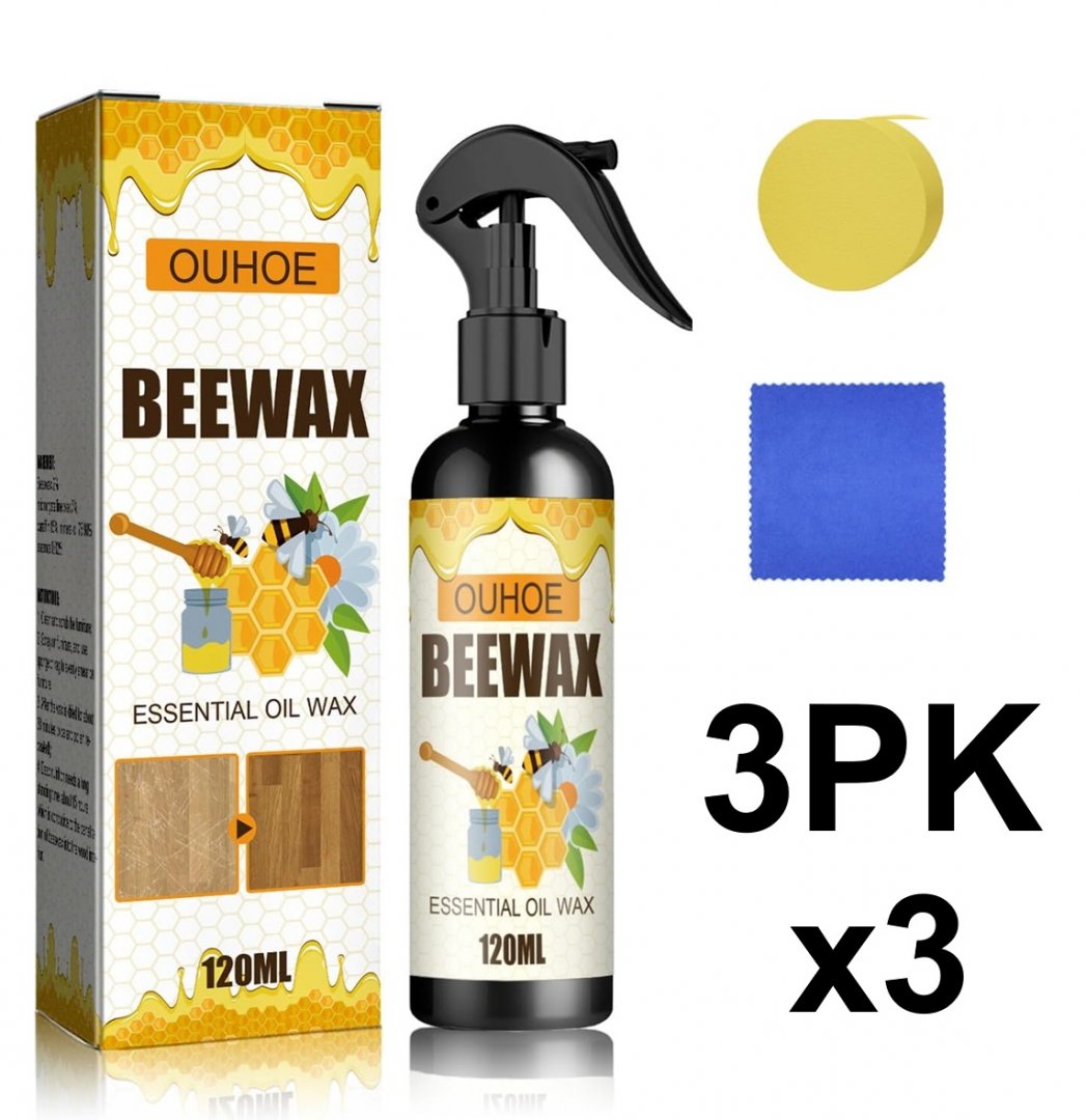 3 (3PK) OUHOE Beeswax Essential Oil Cleaning Spray with Cloth and Sponge - 120ml (EACH)