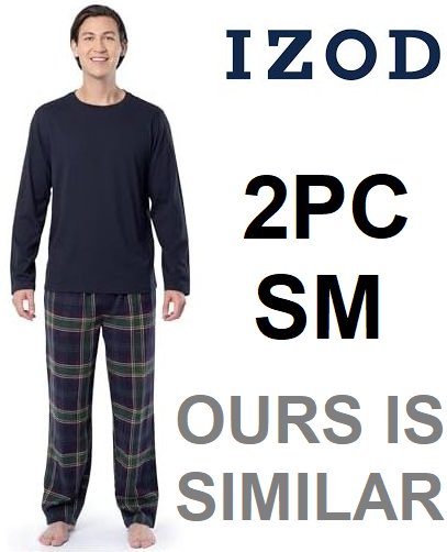 2pc men's izod cozy comfortable pajama set - small - blue / plaid