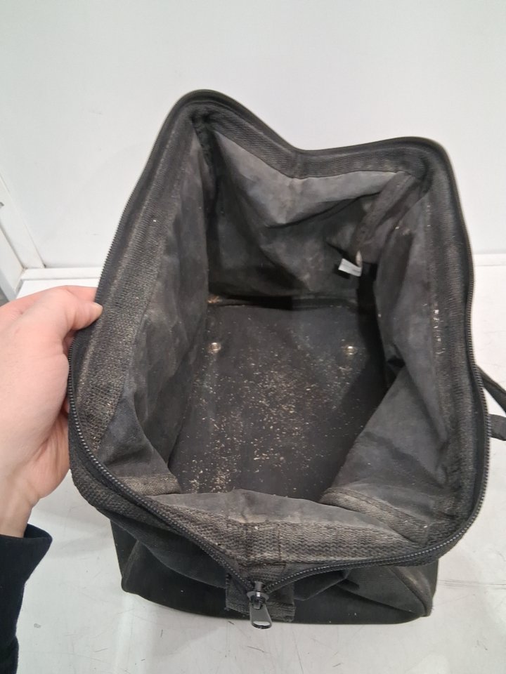 Please note the bag shows signs of previous use with heavy saw dust around the outside and inside the bag and general wear around the outside, see photos.