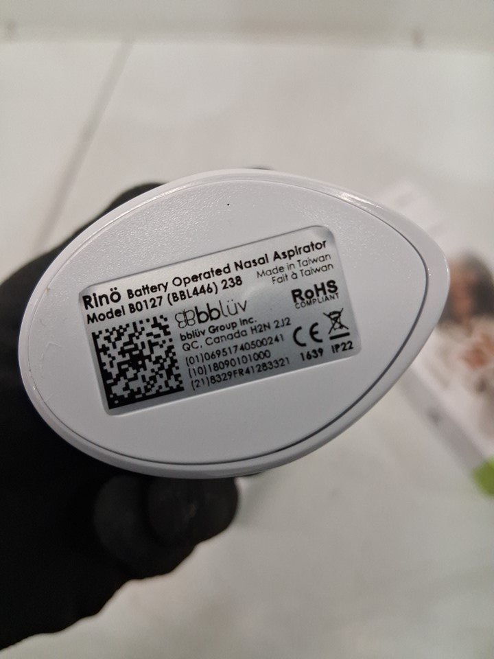 BBLUV RINO BATTERY-OPERATED NASAL ASPIRATOR FOR NEWBORNS and TODDLERS - WHITE (MODEL: B0127)