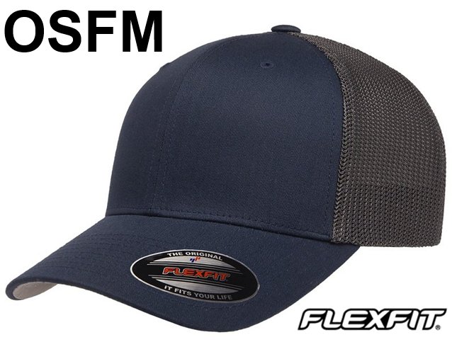 MEN'S FLEXFIT MESH BACK TRUCKER CAP - One Size Fits Most - NAVY BLUE/ GREY