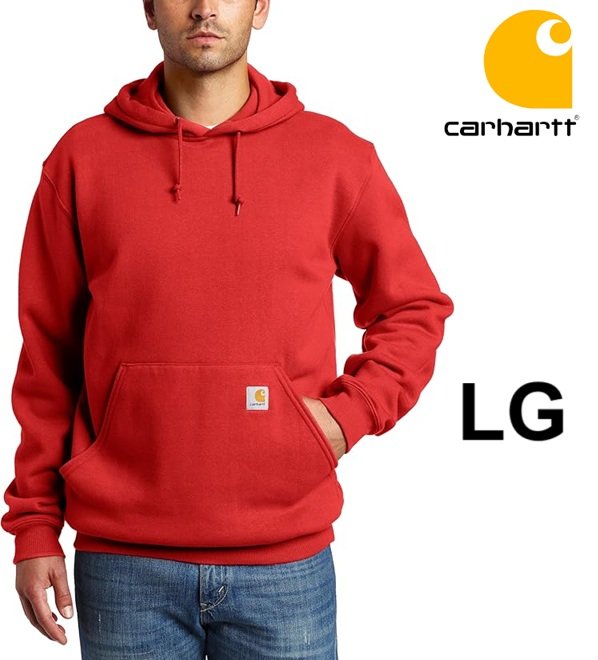 MEN'S CARHARTT LOOSE FIT MIDWEIGHT logo sleeve graphic hoodie sweatshirt - LARGE - RED (STYLE: TS0288-M/ K121-RED)