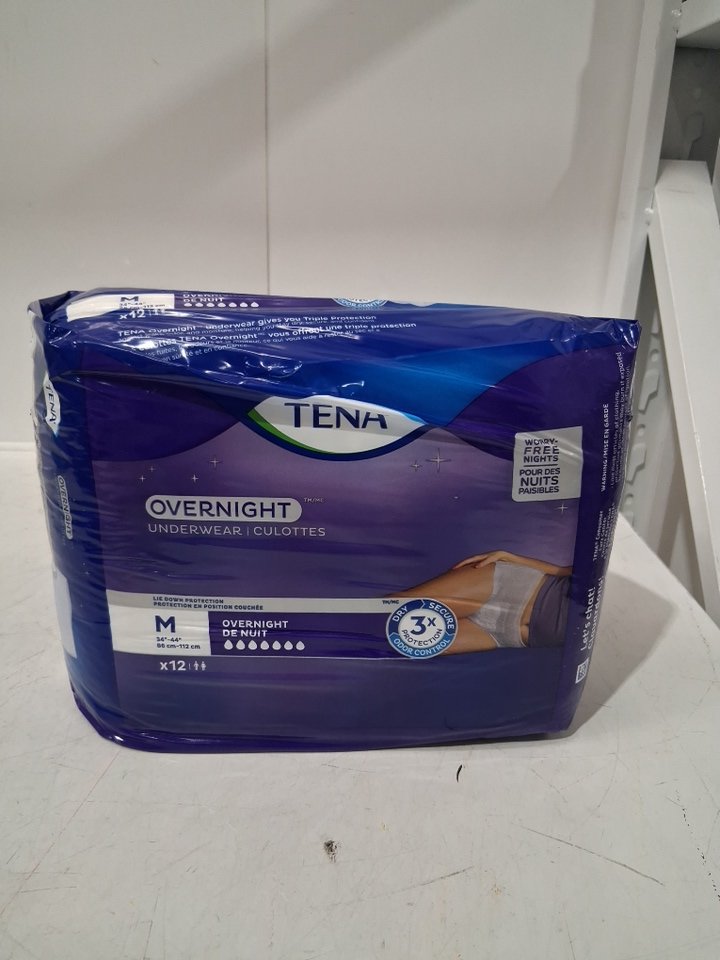 12PK WOMENS' TENA DISPOSABLE OVERNIGHT ABSORBENT UNDERWEAR WITH LIE-DOWN PROTECTION - MEDIUM (34"-44") - WHITE