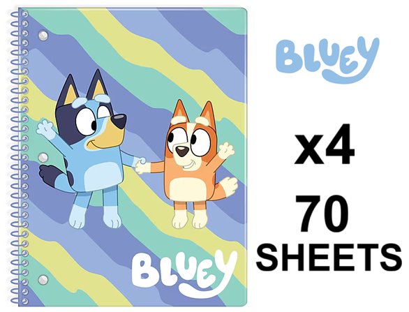 4 Innovative Designs Bluey 1 Subject Notebooks - 8" x 10.5" - 70 Sheets - Multicolored
