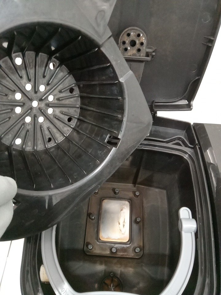 Please note that the metal tray lid, coffee scoop and the manual are missing from the original packaging. There are coffee residue on the filter and on the water tank. There are sticky stains on the dip tray. The product has to be cleaned thoroughly before use. Tested for basic power only. (Please see photos)
