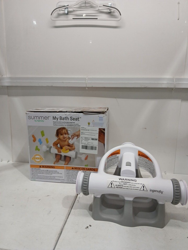 Summer by Ingenuity My Bath Seat Infant Baby Bathtub Seat for Sit-Up Bathing with Backrest Support and Suction Cups for Stability - 5M TO 10M - White/Grey - (model: 19620/pl112524))