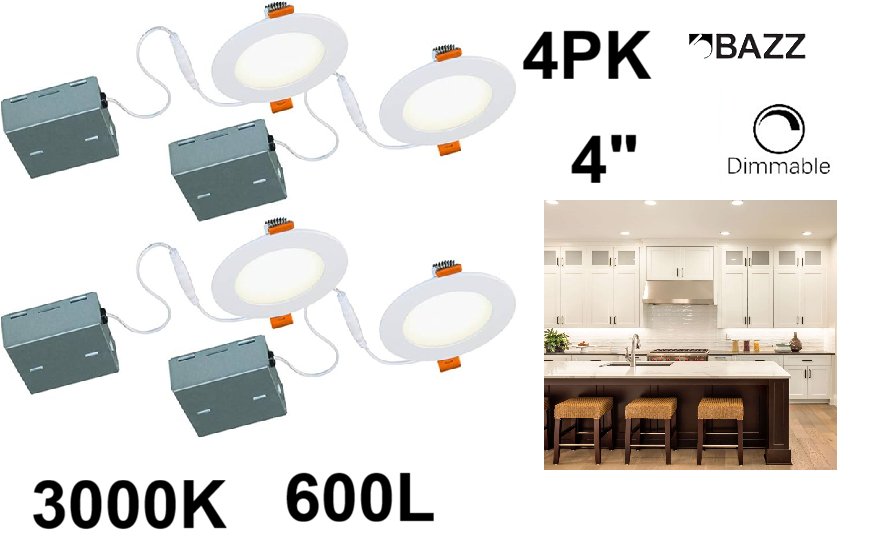 4pk bazz slim disk warm white dimamable recessed lighting kit - 4"- matte white