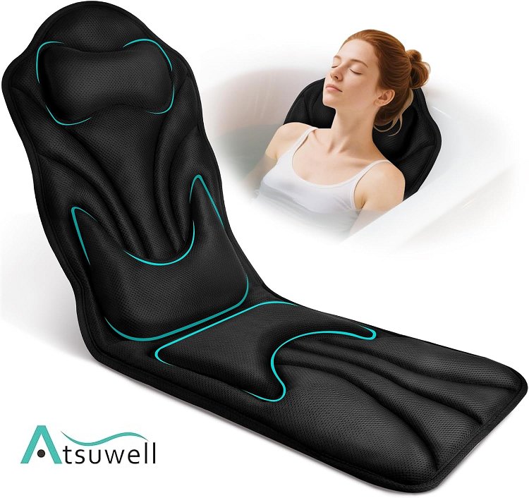 Atsuwell Full Body Bath Pillow for Bathtub, Ergonomic Bathtub Cushion for Neck, Waist, Hip Support, Luxury 3D Mesh Shower Pillow with Non-Slip Suction Cups & Dual Hooks, Pressure Relief, 51'' x17''