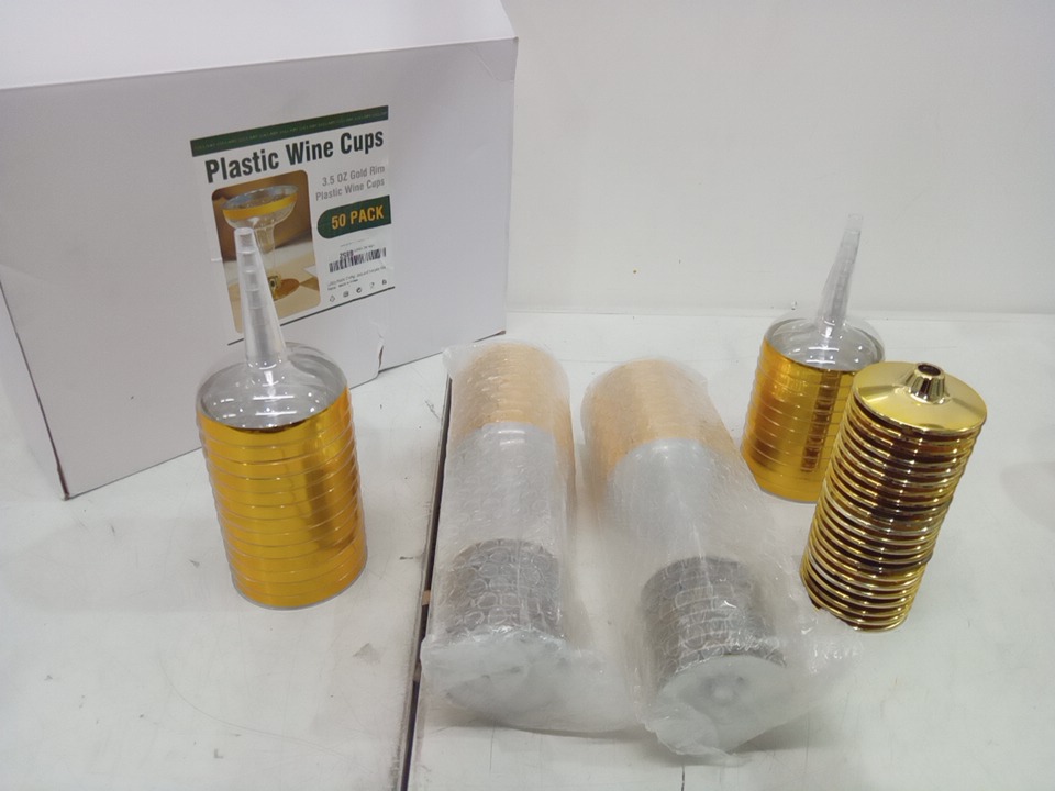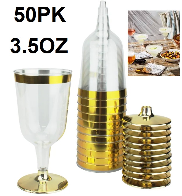50pk Reusable Wine Glassses - 3.5oz - gold
