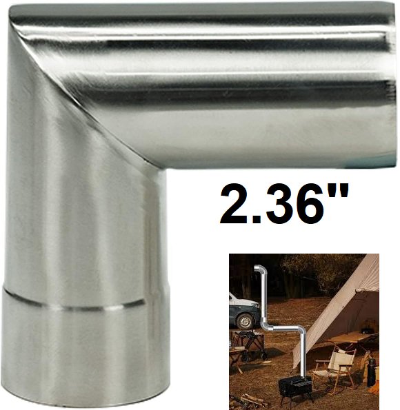 taisoca 90° stainless steel stove chimney exhaust pipe for camping/tent stoves - 2.36" inlet - silver