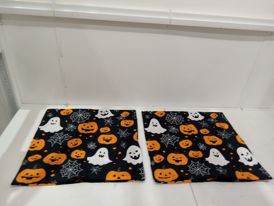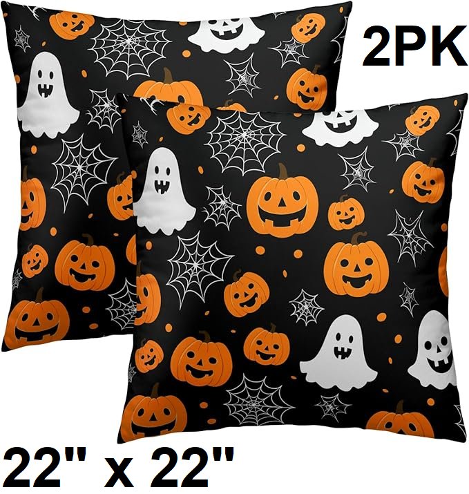 2pk grabey halloween ghosts and pumpkins throw pillow covers - 22" x 22" - black/orange