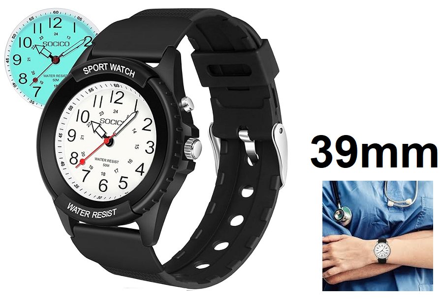 adult unisex sports watch, water resistant with 24 hour clock - 39mm- black
