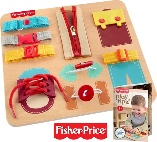 Fisher-Price Wood Montessori Toy Dressing Board - AGES 3+ - MULTICOLOR (MODEL: JDM57)