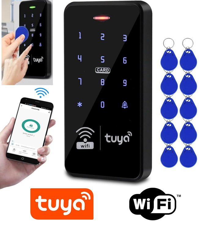 Tuya Access Control RFID Keyboard, wifi enabled, Waterproof, Touch Password Access Controller with Smart APP Remote + 10pcs Keychains Tags (model:S20-WiFi)