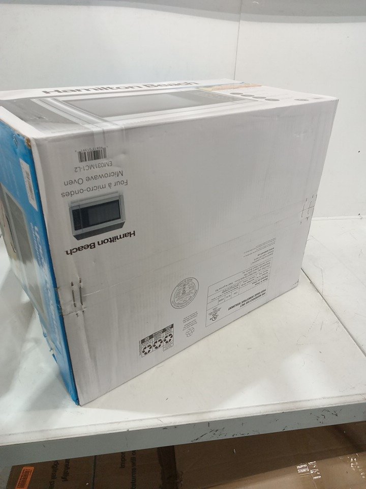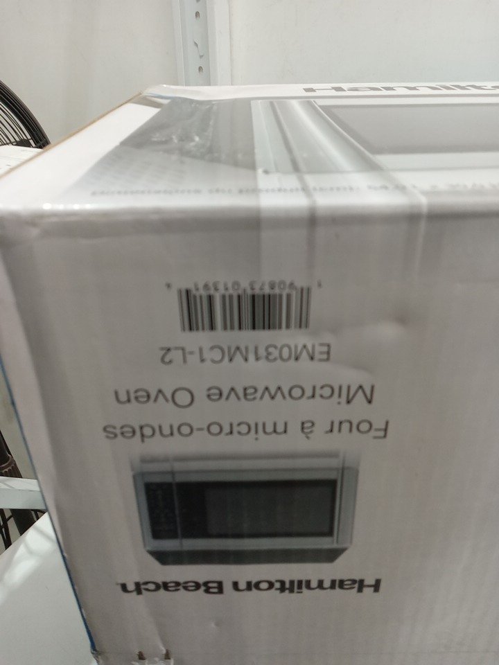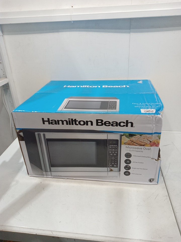 hamilton beach stainless steel countertop microwave with child safety lock - 1.1 cu.ft - 1000w - silver/black (model: em031mc1-l2)