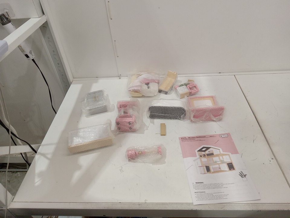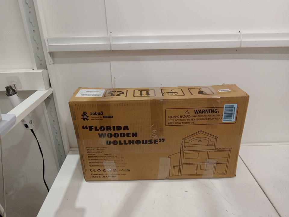 29PC ROBUD Florida Wooden Dollhouse with furniture accessories - 27.4" x 11.6" x 31.5" - Black/natural/white (MODEL: WDH17)