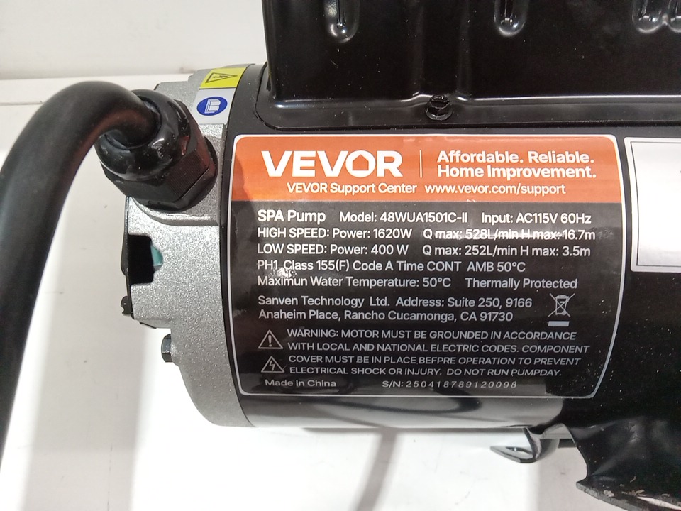 VEVOR SPA Pump - 2 HP, 2-Speed Hot Tub Pump with 2-Inch Port, 115V - 1620W- Port 90° Rotational Interface for Hot Tub - FITS MOST TUBS- black (model: 48WUA1501C-ii)