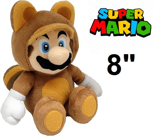 SUPER MARIO OFFICIAL Sanei Tanooki RACCOON PLUSH KEYCHAIN - 8" - BROWN