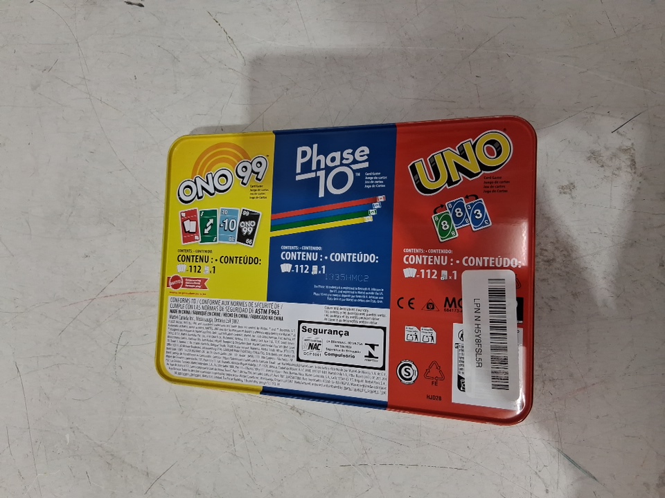 uno 3-in-1 card games in tin storage box - uno, phase 10 & ono 99 (model: ‎HJD28)