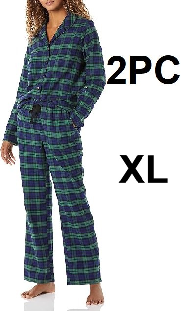 2pc Women's Amazon Essentials Front button shirt and pants pajamas - extra large - blue/green - (Style: ae-w-fw20-pack-125)