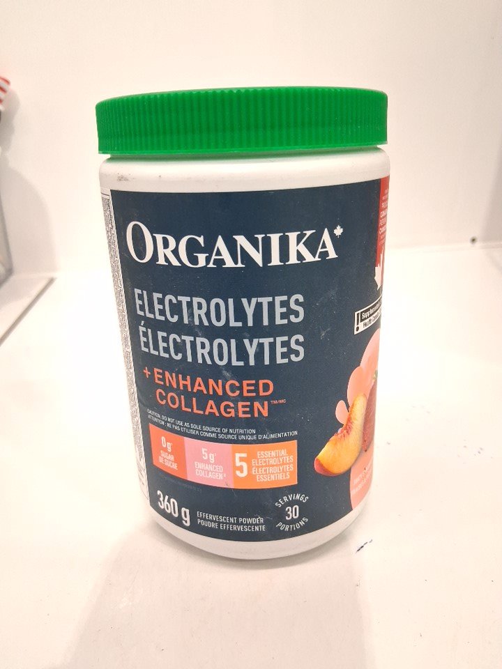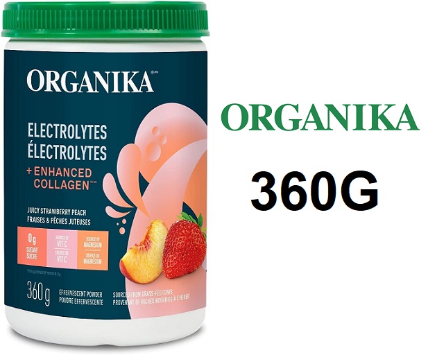 organika electrolytes and enhanced collagen - sugar-free hydration and protein - 360g - juicy strawberry/peach