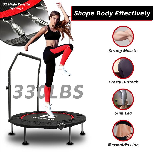 KENSONE 40" FOLDABLE FITNESS TRAMPOLINE, 330LB CAPACITY - BLACK (MODEL: XT-40-ST-RB-P)