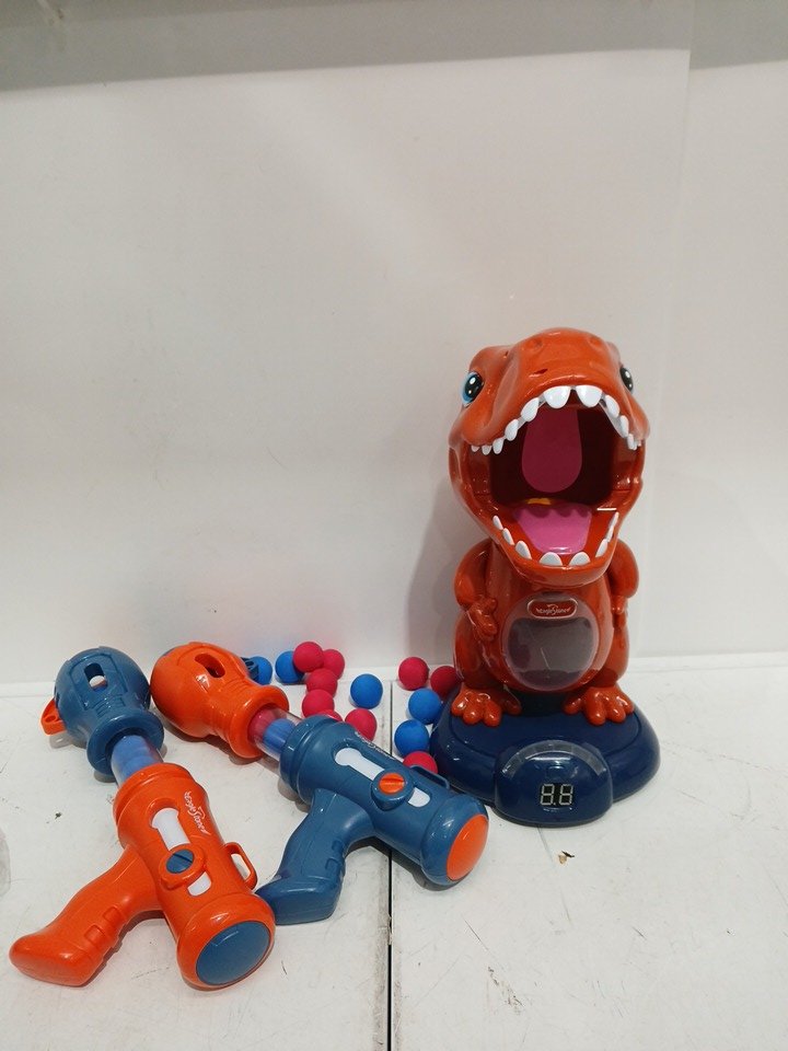 Item Has scuff Marks and crack in the belly of the dinosaur and overall signs of use tested for power and function.