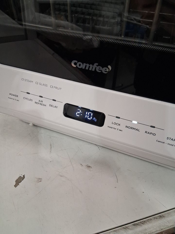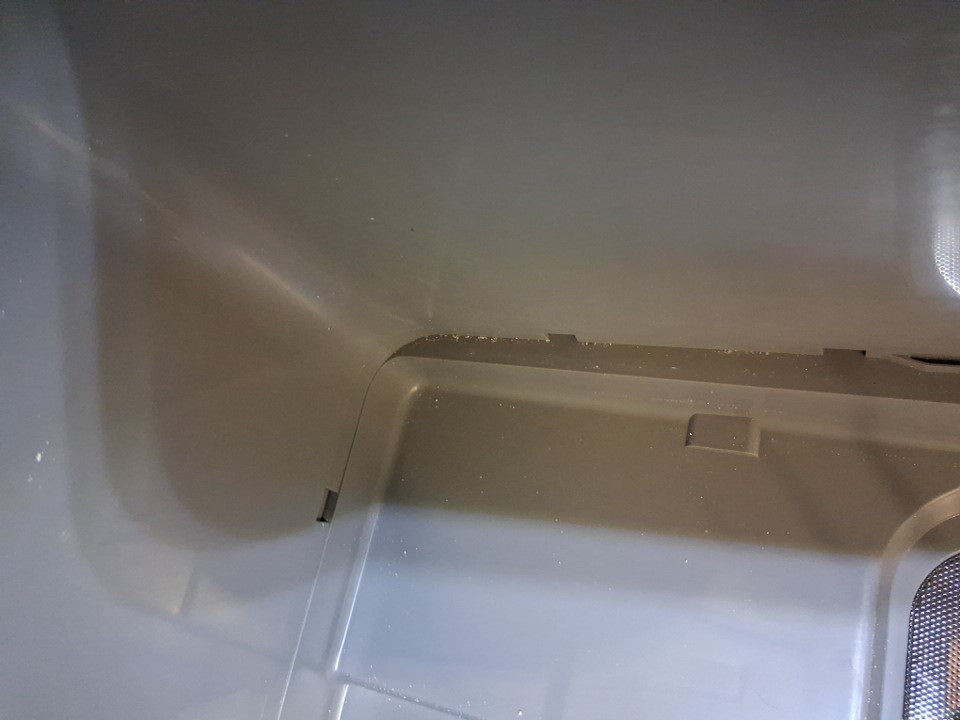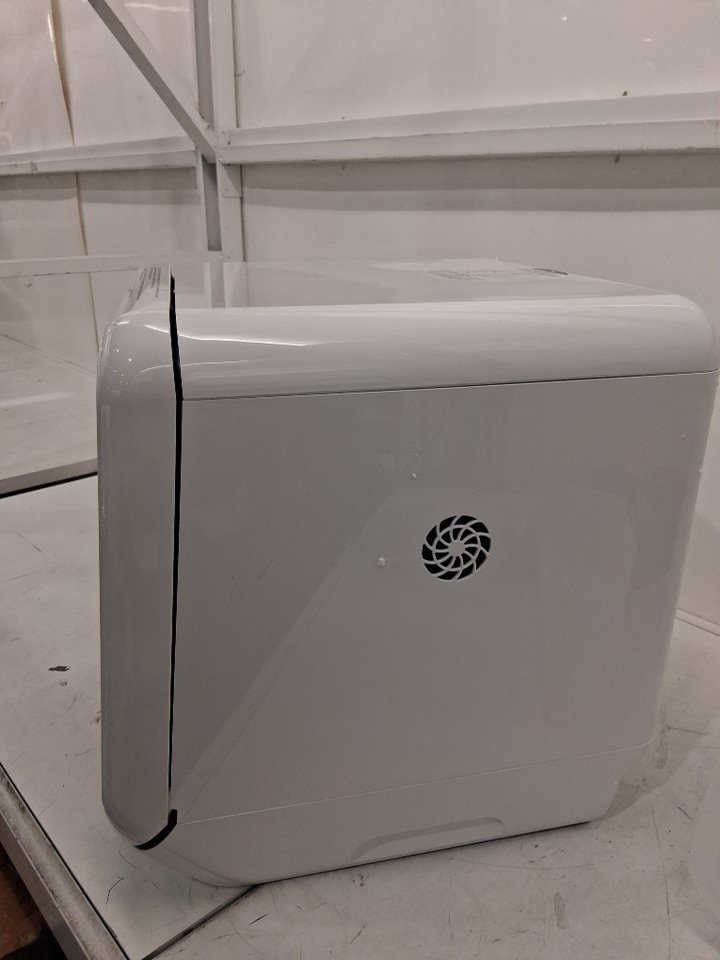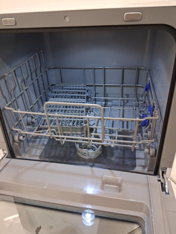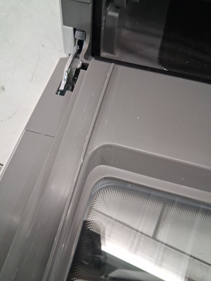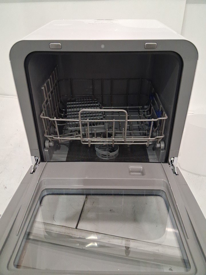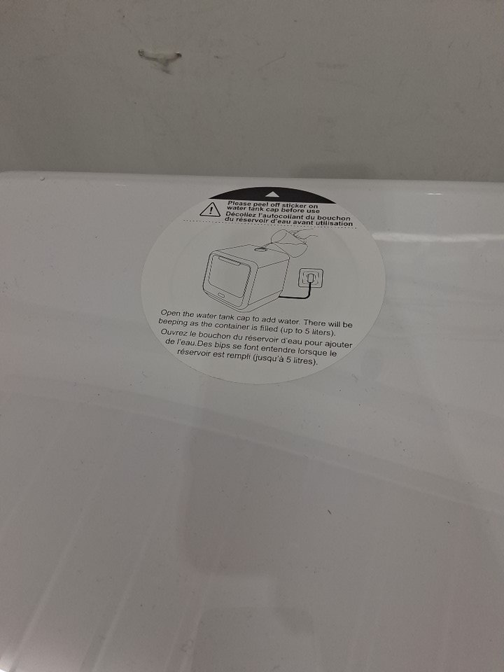 Please note, tubing, top reservoir, and dishwasher tubing insert is still sealed, dishwashers are tested at factory before shipping out, dishwasher has no water spots however inside and on door there is a white residue from manufacturing testing