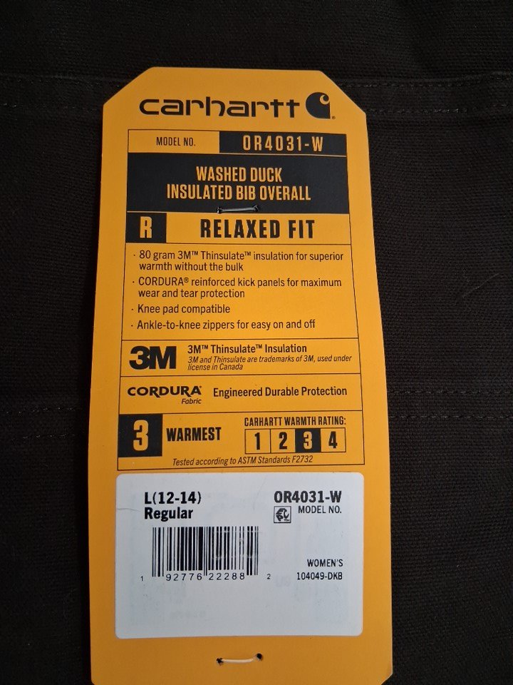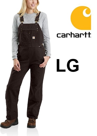 WOMENS CARHARTT RELAXED FIT WASHED DUCK INSULATED BIB OVERALLS - LARGE - DARK BROWN (STYLE: OR4031-W)
