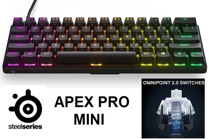 SteelSeries Apex Pro Mini Mechanical Gaming Keyboard OmniPoint 2.0 Switches, Compact 60% Form Factor RGB PBT Keycaps - Black (Model:‎ ‎KB-00017)