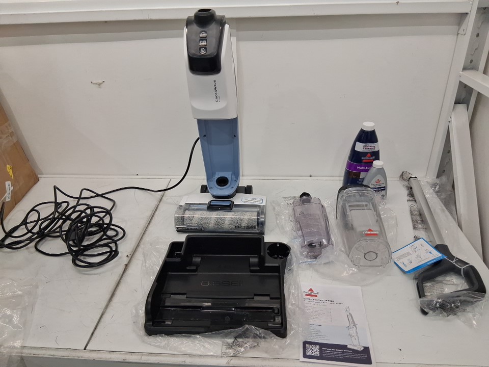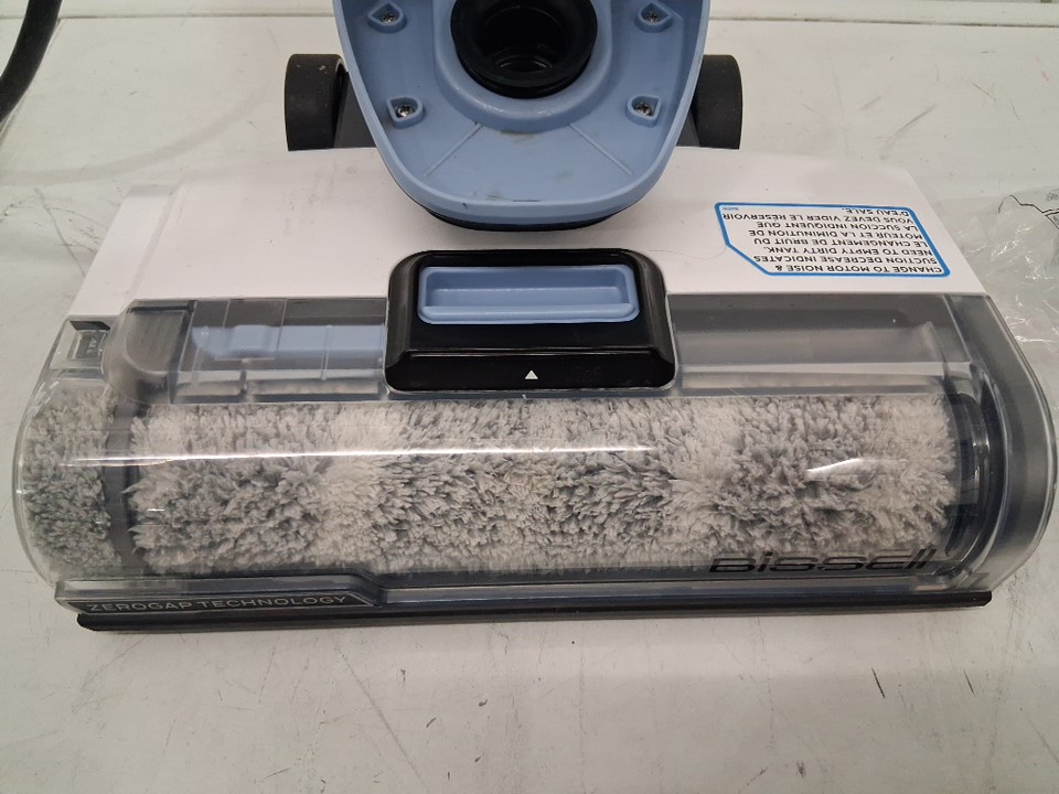 Has been tested for power (no indicator light) spinner brush doesn't spin however may need to have solution/water in machine or floor for it to work. has water spots and loose hair on it . Cleaning solution has been opened