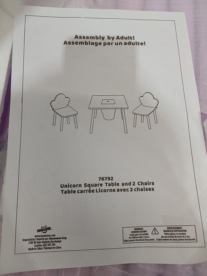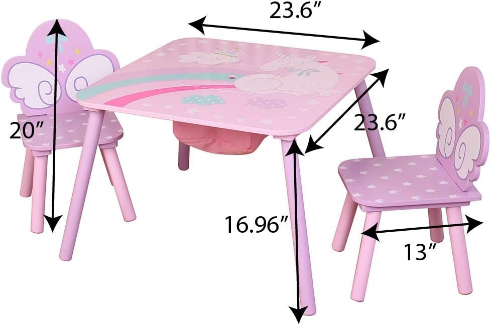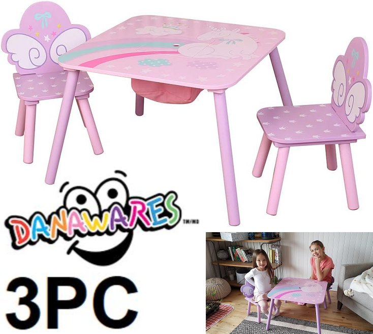 3pc danawares toddler unicorn table & chair set - pink (model:76792)