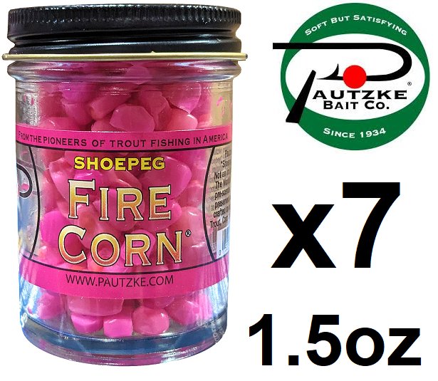 7 pautzke shoepeg fire corn fish attractant - 1.5oz each - pink