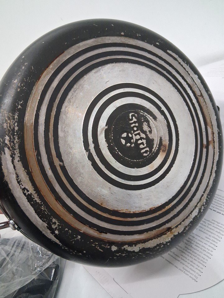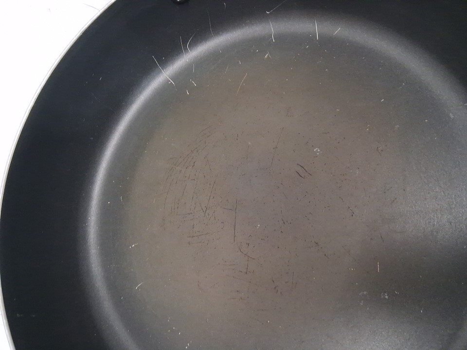 Some scratches inside pan from prior use- bottom is slightly distressed from prior use (see photos)