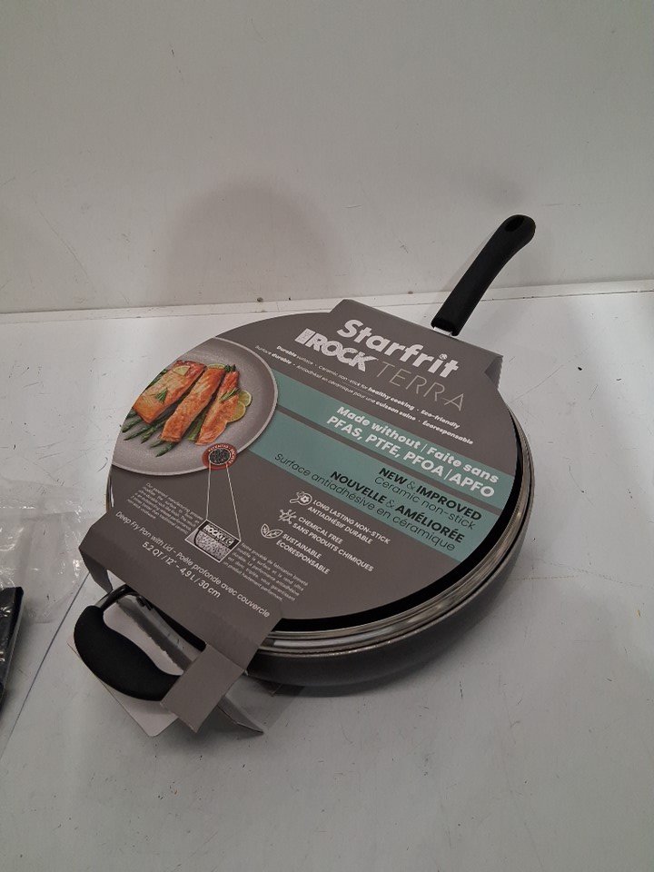 2pc STARFRIT THE ROCK terra NON-STICK chemical free DEEP FRY PAN WITH LID - 12" - 5.2qt - black