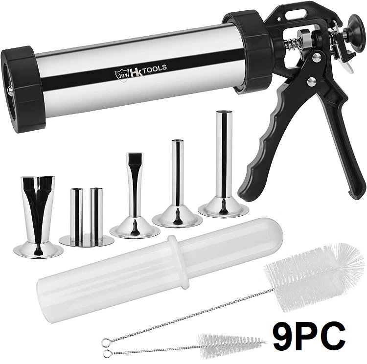 9pc HK STAINLESS STEEL JERKY GUN KIT - stainless steel/black