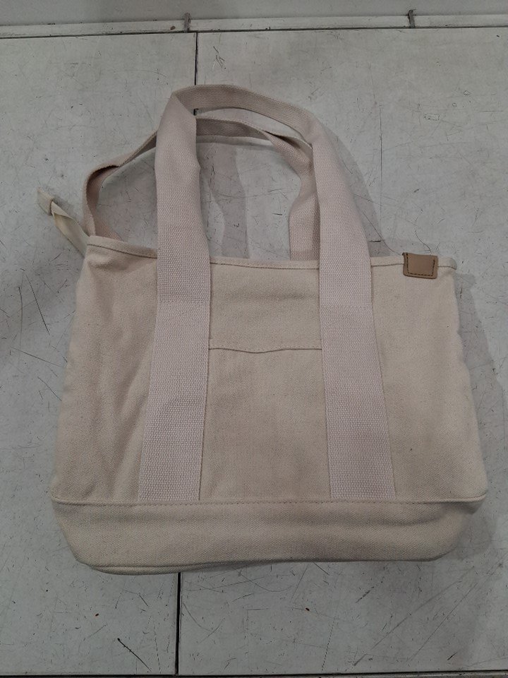 canvas tote bag with 3 main compartments and 2 slip pockets - 14.5" x 11.4" - beige
