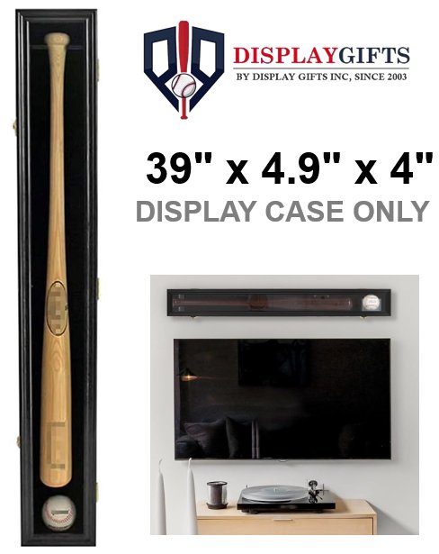 DisplayGifts Pro Collector's Baseball Bat Display Case Frame with 98% UV Protection Acrylic Door - 39" x 4.9" x 4" - BLACK (MODEL: 791090446839)