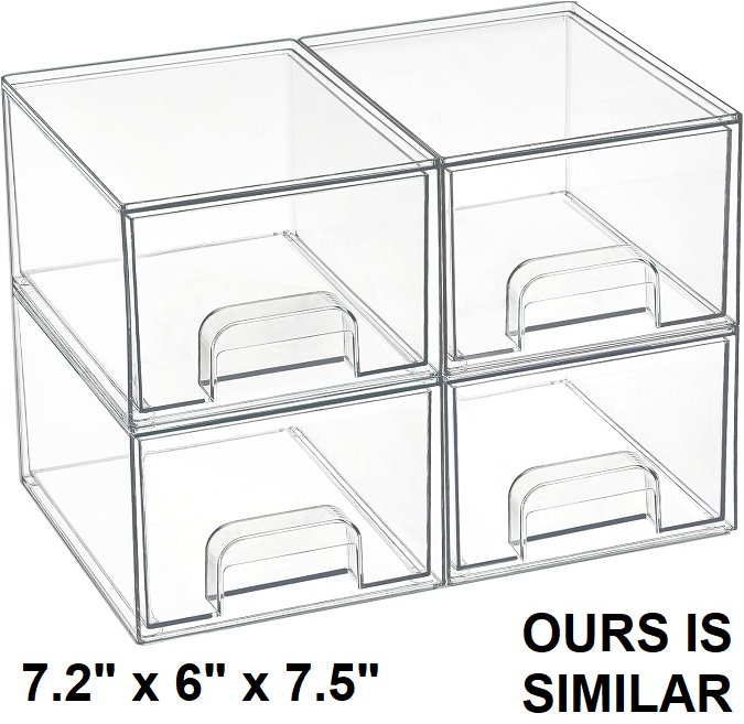 4PK CLEAR ACRYLIC PULL-OUT STORAGE DRAWERS FOR OFFICE, ORGANIZATION - 7.2" X 6" X 7.5" - TRANSPARENT