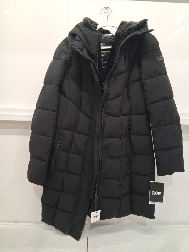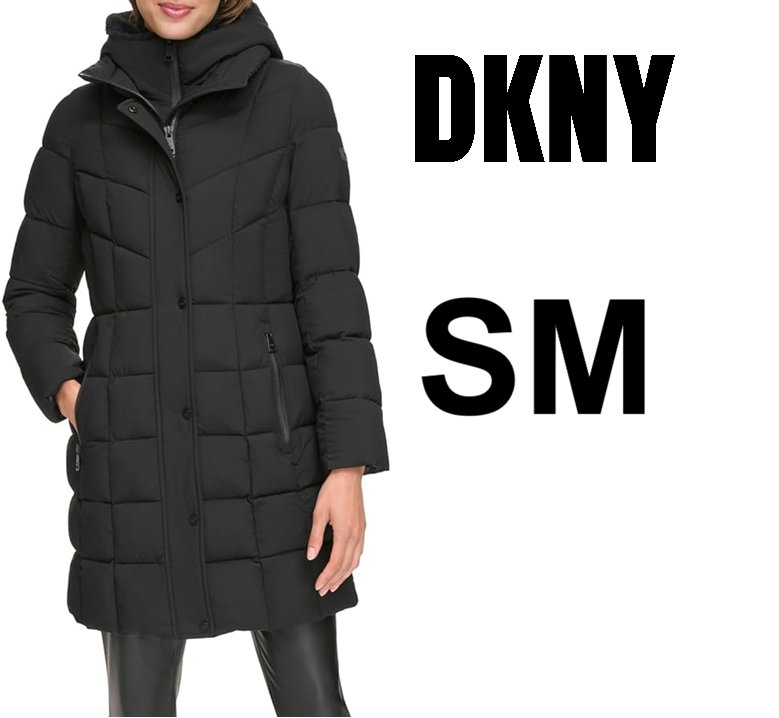 women's DKNY Bib-front Long Puffer jacket - small - black (style: dl3mpq90)