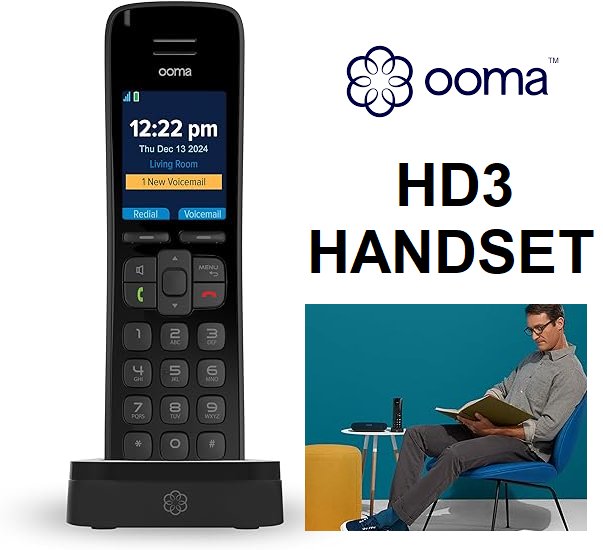 Ooma HD3 Handset cordless phone with caller-ID and HD voice quality-black