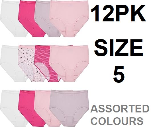 12PK WOMEN'S FRUIT OF THE LOOM COTTON BRIEF UNDERWEAR -SIZE 5 - multicolour
