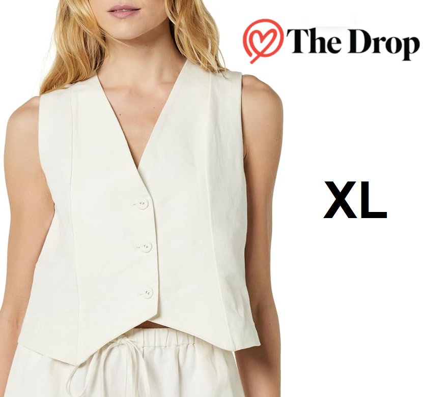 women's the drop esma cotton linen vest - extra large - ivory