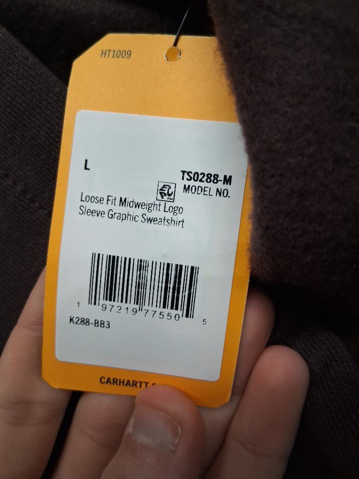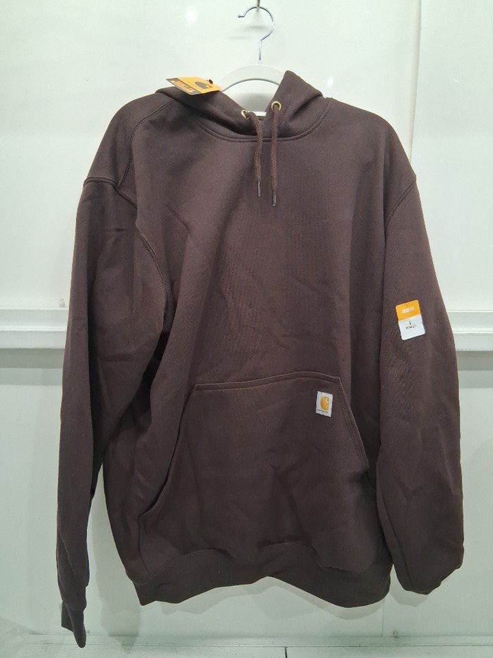 MEN'S CARHARTT LOOSE FIT MIDWEIGHT logo sleeve graphic hoodie sweatshirt - large - Dark Sepia (model: ts0288-m)