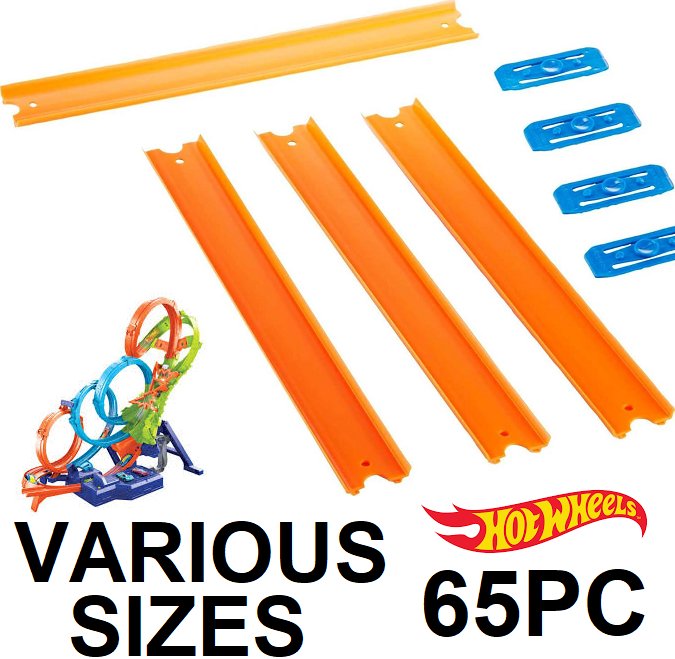 65PC ​Hot Wheels Track Builder Unlimited Straight Track Pack with car - VARIOUS SIZES - orange/blue