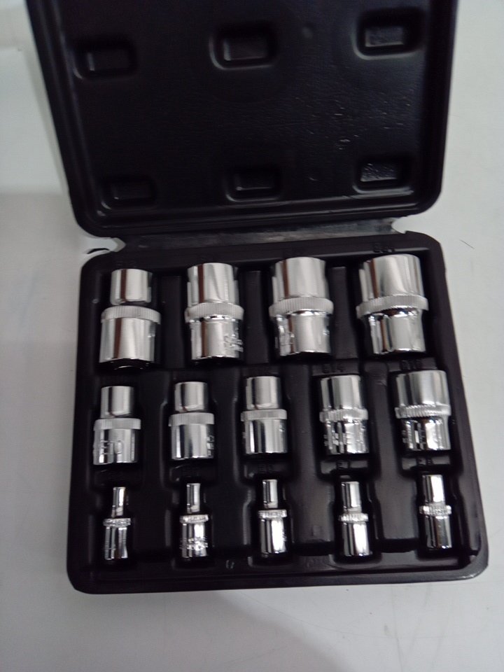 14pc amazon basics E Torx Star Socket Set - 1/2" / 3/8" / 1/4" - silver (model: ‎DS-SK13)