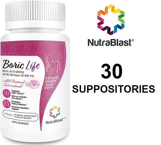 (30 SUPPOSITORIES) NUTRABLAST BORIC LIFE BORIC ACID VAGINAL SUPPOSITORIES - SUPPORTS ODOR CONTROL AND PROMOTES VAGINAL BALANCE - 600MG