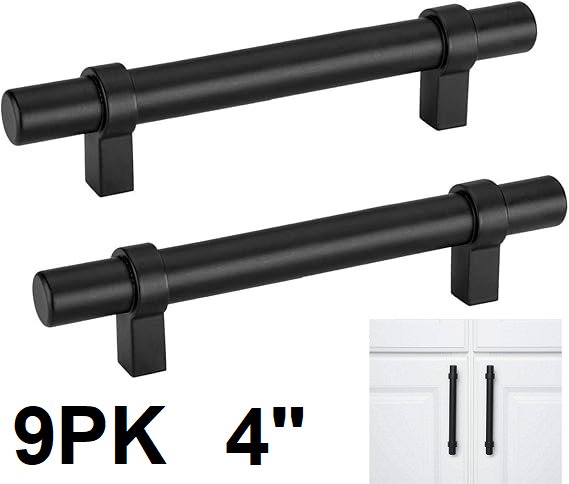 9pk Drawer Pulls Matte Black Cabinet Pulls Kitchen Cabinet Handles - 4" - black