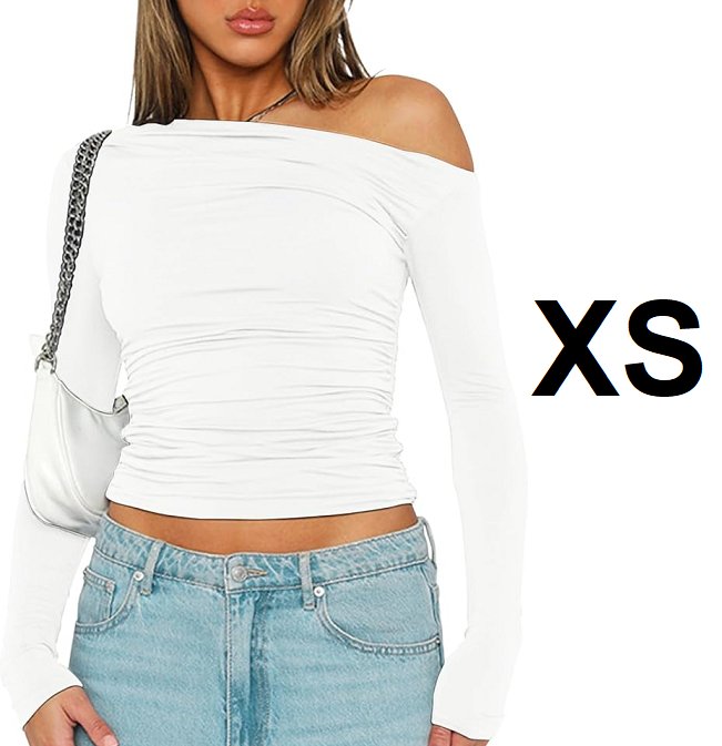 CAIAQAZY WOMEN'S LONG SLEEVE off the shoulder ruched slim fit CROP TOP - extra small - white